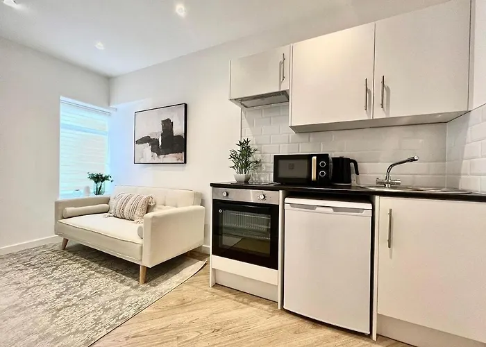Zu den Selbstversorger-Einrichtungen gehört komplette Küche mit einer Mikrowelle, einem Wasserkocher und einem Kühlschrank. Wählen Sie aus einer guten Auswahl an griechischen Gerichten im Restaurant The Real Greek nur wenige Schritte entfernt von diesem Apartment. Die Bushaltestelle Gervis Place liegt gleich neben der Ferienwohnung The Escape, The Kove, Bournemouth Beach. Eine Terrasse können Sie speisen und einen Drink genießen.